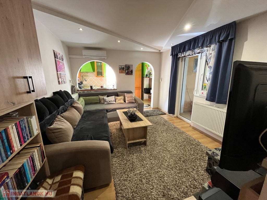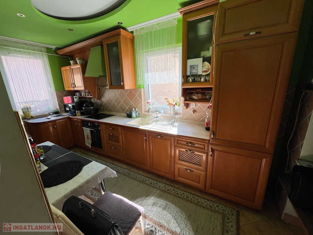 A családi ház klímákkal és napelemmel felszerelt, konyhájában egyedi gépesített konyhabútor került beépítésre. Az ingatlan alsó szintjén egy szoba, nappali, konyha, fürdőszoba, WC, található. Az emeleten két külön nyíló szoba, fürdőszoba, WC került kialakításra.