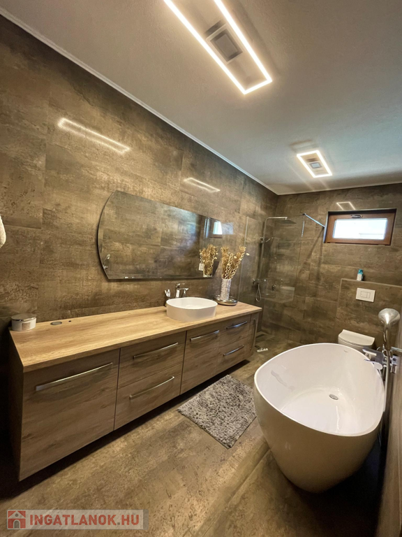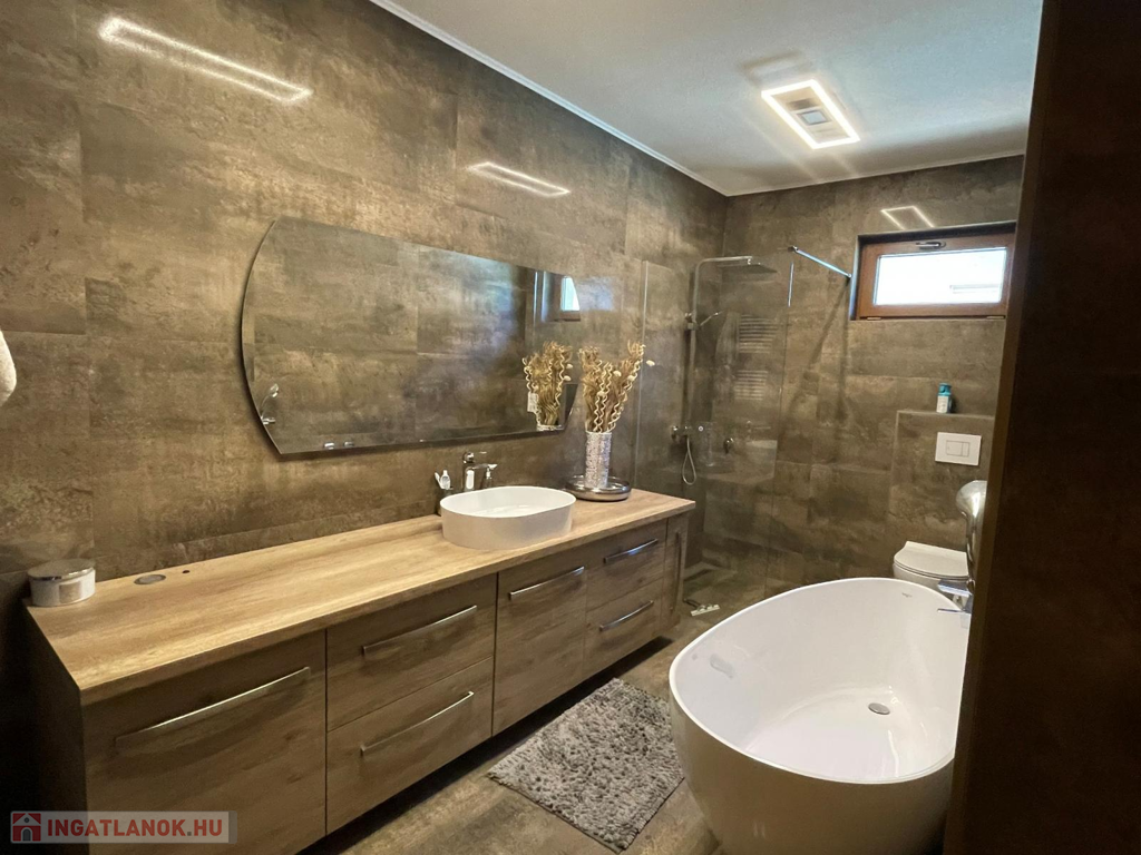 Nyíregyházához 8 km-re 159 nm-es MODERN STÍLUSÚ családi ház, beépített bútorzattal, gépekkel, 200 nm-es VENDÉGLÁTÓ EGYSÉGGEL és RENDEZVÉNYEK SZERVEZÉSÉRE IS ALKALMAS 130 nm-es HŐSZIGETELT CSARNOKKAL eladó! Az épületek kiváló állapotban vannak, annak külső és belső rendezettsége kifogástalan. Minőségi anyagokkal, egyedi színekkel rendelkezik. Ez egy igazán stílusos ingatlan, ahol családi ház és családi vállalkozásra alkalmas (pl: étterem, üzletek, panzió…stb) építmények állnak rendelkezésére. Főbb jellemzők: - telek területe: 1240 nm, utcafronti szélessége 25 m, hossza: 50 m. CSALÁDI HÁZ: - 159 nm-es, - 2000 évi építésű, szilikát falazattal, cseréptetős, - 2008-ban teljes átalakítás, 2018-ban korszerűsítés volt, földszint: - 3 külön nyíló szoba, - amerikai típusú konyha+nappali+étkező egy légtérben, - kamra, - fürdő, - WC, - tágas gardróbszoba, - klíma - kazánház, - garázs, - tárolóhelység, - tájolása: kelet-nyugat, - burkolata: parketta, lamináltlap, járólap - fűtése: gáz cirkó, vízteres kandalló, - 30 nm-es terasz (csodás pihenőkert kapcsolattal), - 2018-ban hőszigetelt, fa hatású műanyag nyílászáró csere volt. tetőtér: - könnyűszerkezetes, - 1 légtér, ízlés szerint alakítható, - fűtése: inverteres klíma. UDVAR: - igényesen parkosított, - térkövezett, - kerti tóval ellátott - automata öntözőrendszer. VENDÉGLÁTÓEGYSÉG: - 200 nm-es (biliárdterem, vendégtér, férfi-női WC-kézmosó, raktárak, fedett terasz), - 1997-től kialakított vendégkörrel, jól működő vállalkozással rendelkezik. CSARNOK/RENDEZVÉNYTEREM: - 130 nm-es, - 2021-ben épült, - hőszigetelt (10-es szendvicspanelből épült). Az ingatlan családi házas övezetben, a város központi részén helyezkedik el. Pár percen belül elérhető: üzletek, egészségügyi rendelő, iskola, óvoda, bölcsőde.Az ingatlan azonosítója: 61108Érdeklődni: +36204394852 Az ingatlan azonosítója: 61108 Érdeklődni: +36204394852