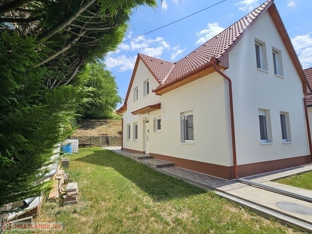 Orfűn a Pécsi tóhoz és a központhoz közel, egy csendes utcában eladó 1/1 tulajdonú 2020-ban épült, sosem lakott (gyakorlatilag új) családi ház. A ház két szintes, a földszint teljesen beépített a következő helységekkel: nappali-konyha, fürdő, külön wc, egy tároló/gépészeti helység, közlekedő lépcsőházzal és két szobával. A tetőtér 1m magas térdfallal készült jól beépíthető kialakításban, a 3db oromfalon 2-2db ablakkal ellátva. Az emelet hasznos alapterülete 52 négyzetméter (59m2 beépíthető). A ház összesen kb.120 lakható négyzetméterrel rendelkezik. Az udvar 420 négyzetméteres, nagyobb része teljesen vízszintes, további része egy támfalt követően emelkedik. Hátul burkolt 36 négyzetméteres terasz található, az épület körül burkolt járda készült. Épületszerkezet: 30cm Porotherm Klíma tégla + 8cm EPS szigeteléssel készült falak, vasalt felbetonnal ellátott E-gerendás vasbeton födém, vasbeton lépcső. Műanyag ablakok 3 rétegű üveggel TROCAL tokkal, alumínium redőnnyel és szúnyoghálóval ellátva készültek (teraszajtónál motoros redőny). Napcella 4,2kW (szaldós), villanybekötés: 3x16A, új víz és szennyvízrákötés készült az építés során, a telek gázcsonkkal is rendelkezik. A lakrész padlófűtéssel ellátott, jelenleg villanykazánnal fűtve, de ez kicserélhető split rendszerű hőszivattyúra, melynek védőcsövezése elő van készítve az épületben. További kérdés esetén hívjon bizalommal.