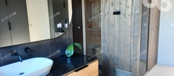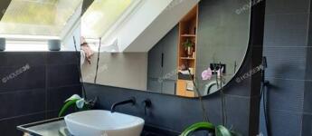 A 25 négyzetméteres hálóból nyíló mosdó helyiségben egy előtétfal mögött dupla zuhanyzó és egy negyed óra alatt 105°C-ra is felfűthető finn szauna található.
