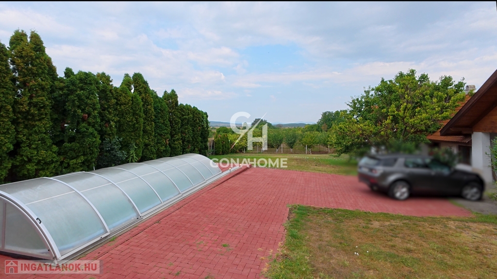 * Kültéri extrák: 9x3 m-es medence (fedhető), 180 termő gyümölcsfa, gondozott kert,