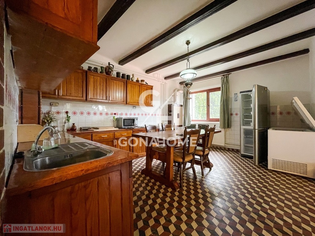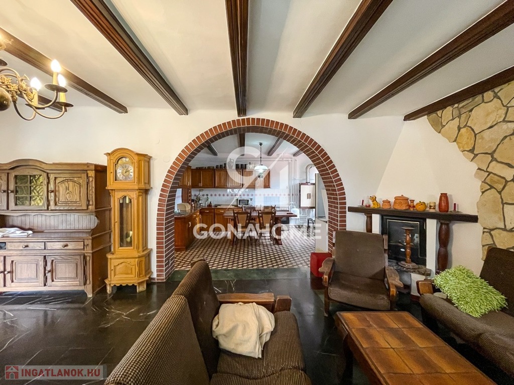 * Melléképületek: dupla garázs, 45 m²-es apartman (2 szoba, konyha, fürdőszoba), hatalmas pajta.
