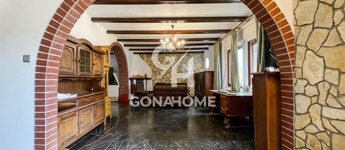 * Főépület: kétszintes, bruttó 320 m², 5 szoba + 2 nappali + étkező-konyha, 2 fürdőszoba, 2 külön WC, gardrób, erkély, részben alápincézett