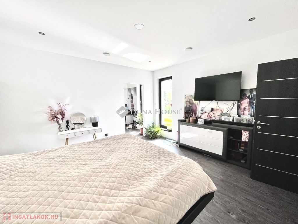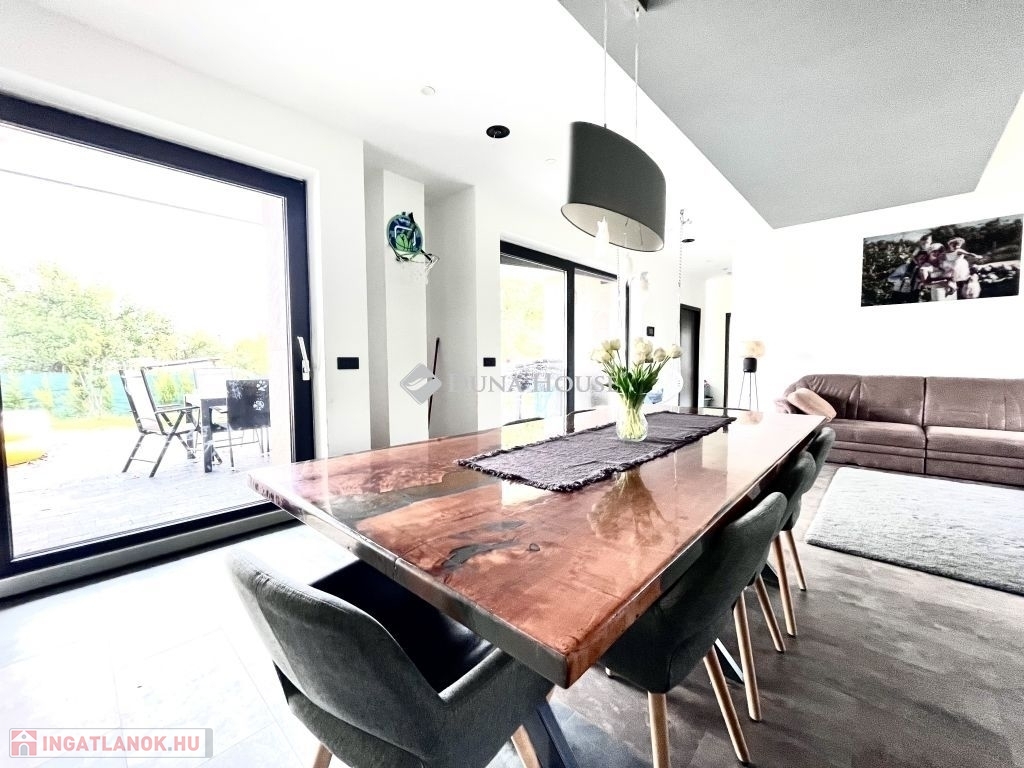 Eladó okos ház Pécsen2020-ban épült, OKOSHÁZ, prémium felszereltséggel!Pécs belvárosától mindössze 10 perc távolságra eladó egy modern, 2020-ban épült, okos funkciókkal felszerelt családi ház.Az ingatlan közel 1600 m²-es, teljesen körbekerített telken fekszik, amelyről csodálatos panoráma nyílik a környékre.A ház elosztása:4 hálószoba, melyek közül az egyik saját fürdőszobával rendelkezikTovábbá 1 különálló fürdőszoba WC-vel, egy külön WC és egy praktikus kamraÓriási amerikai konyha - nappali, amely közösségi élet központja.A konyha minőségi gépekkel van felszerelve.Műszaki jellemzők:Hőszivattyús fűtési rendszer, valamint beépített klímák gondoskodnak az otthon kényelméről.30-as Porotherm téglából épült, 20 cm-es grafit hőszigetelésselOkos szellőztető rendszer és villany- és redőnyvezérlés, amely okostelefonról működtethetőRiasztó- és kamerarendszer lett kiépítve, H tarifa és 3x25 A áramellátás rendelkezésre áll.Az házba központi vízlágyítót szereltek be.Az ingatlanhoz tartozik egy két autó beállásos garázs, valamint egy irodahelyiség.Az udvaron fedett terasz, egy hangulatos filagória. AMELYBEN kültéri konyha grillezővel és dézsával lett kialakítva.Gyerekeknek játszótér, továbbá teljes panorámás kilátás. Mecsekre.A kertet öntözőrendszer látja el.Ez a ház tökéletes választás mindazok számára, akik modern, kényelmes és okos megoldásokat keresnek egy gyönyörű helyen. Ne hagyja ki ezt a különleges lehetőséget!