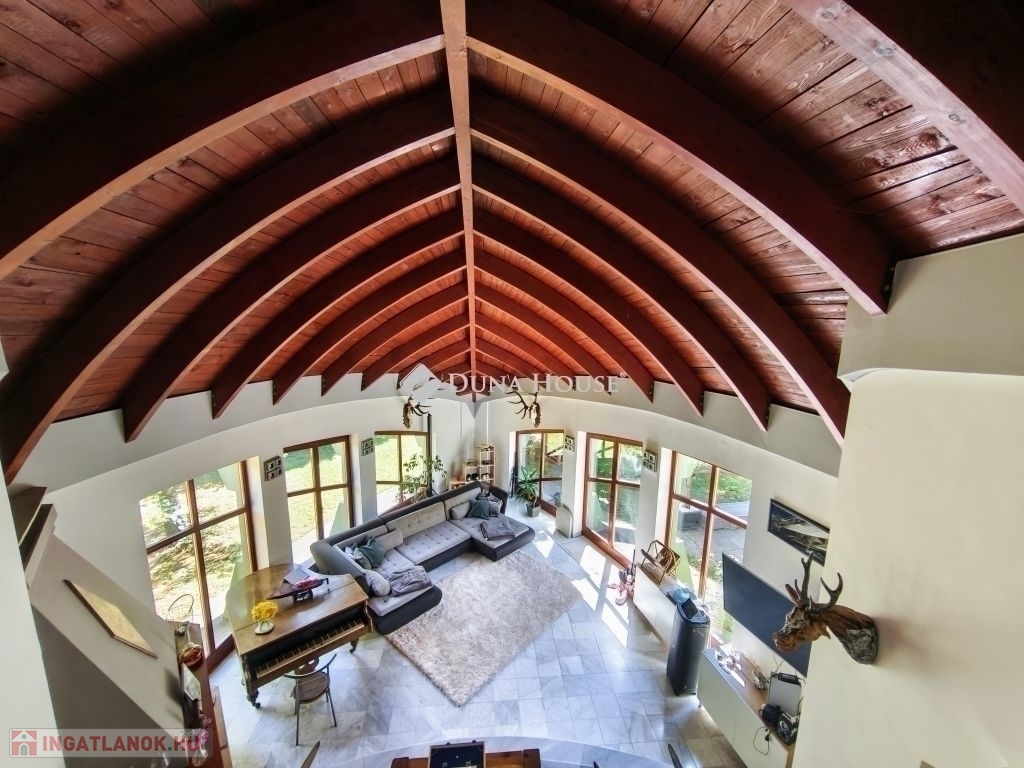 Eladó különleges, medencés családi ház Pécsen, a Mecsek keleti oldalán!Háromszintes, nettó 240 m²-es otthon, 2132 m²-es, parkosított telken. A kert egyik legnagyobb előnye az ellenáramoltatós, 1,7 méter mély medence, valamint a hangulatos pavilon, ami ideális helyszín a közös kerti programokhoz.-Tágas, világos nappali galériával és 5 méteres belmagassággal-Kandalló, ami otthonos, meghitt hangulatot teremt-3 külön nyíló hálószoba, 1 félszoba-A tetőtérben 2 szoba található, ebből az egyik már kialakított, a másik pedig beépíthető akár plusz hálóként vagy dolgozóként is használható-Egy nagyobb alagsori garázs autó számára, valamint egy kisebb, ami motor, kerékpár vagy tárolás céljára ideális-Udvari beállási lehetőség több autónak-Buszmegálló kb. 400 méterre, így a tömegközlekedés is könnyen elérhetőEz az ingatlan azoknak szól, akik nyugodt, zöld környezetben szeretnének élni, de nem szeretnének lemondani a város közelségéről és a kényelmes, nagyvonalú élettérről.Érdeklődés vagy megtekintés esetén hívjon bizalommal!