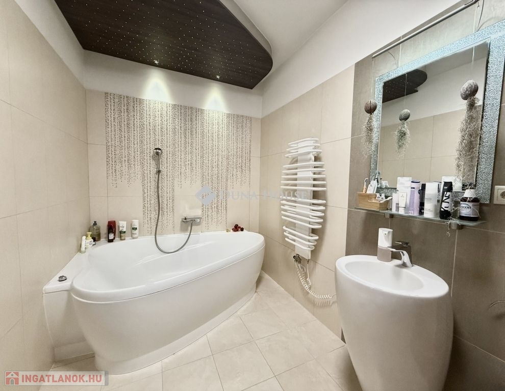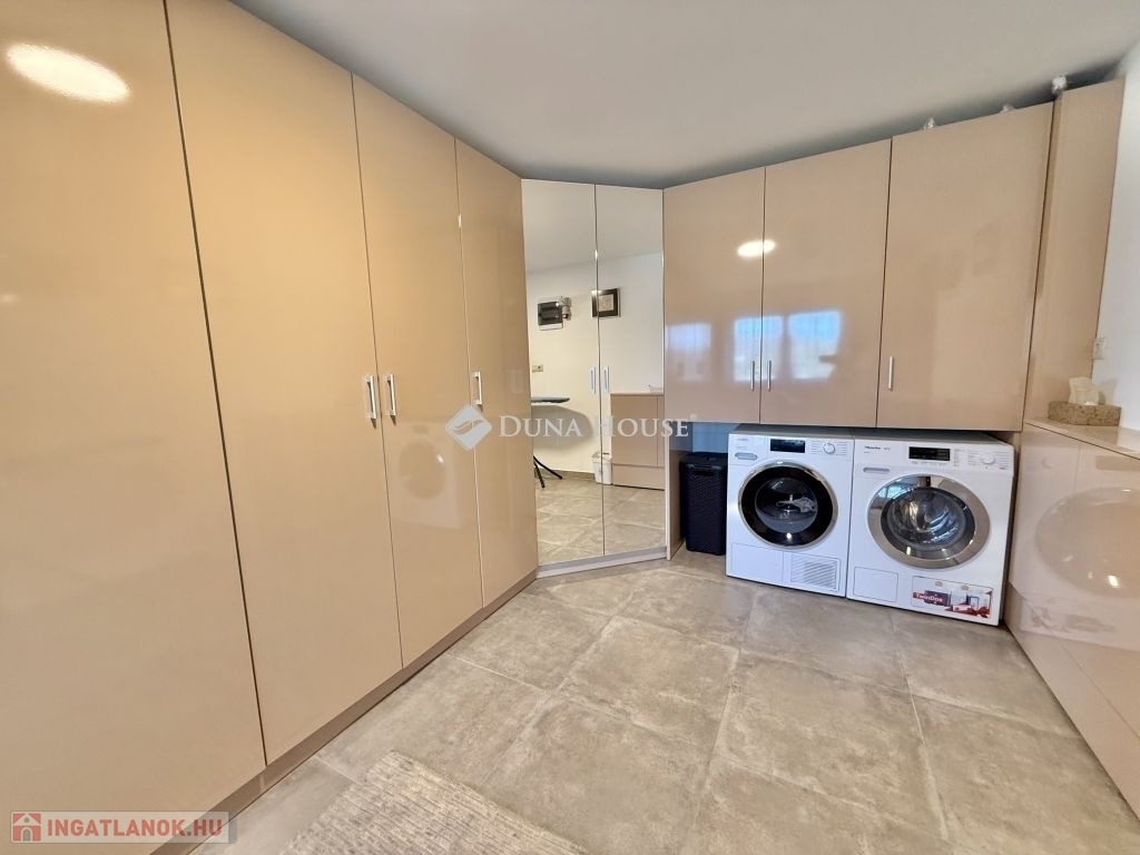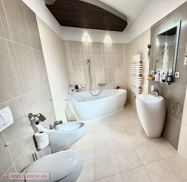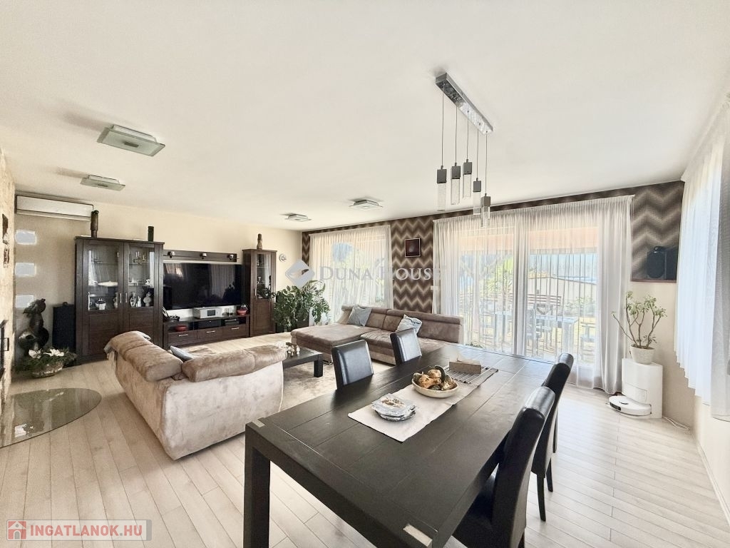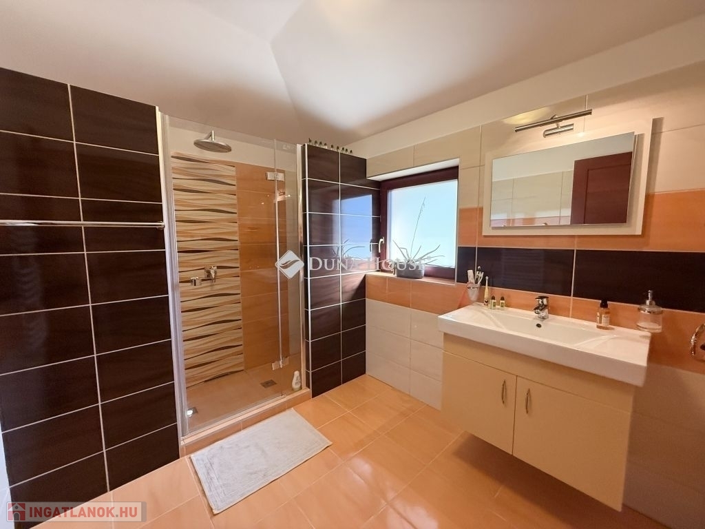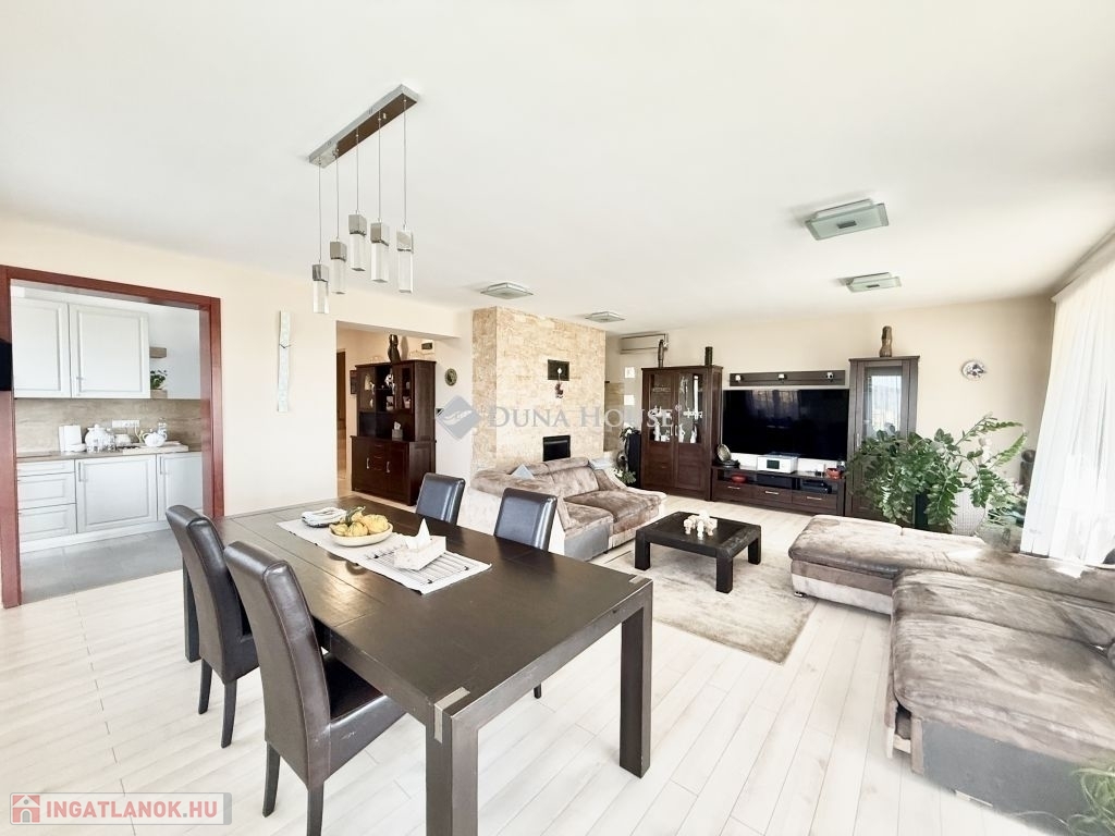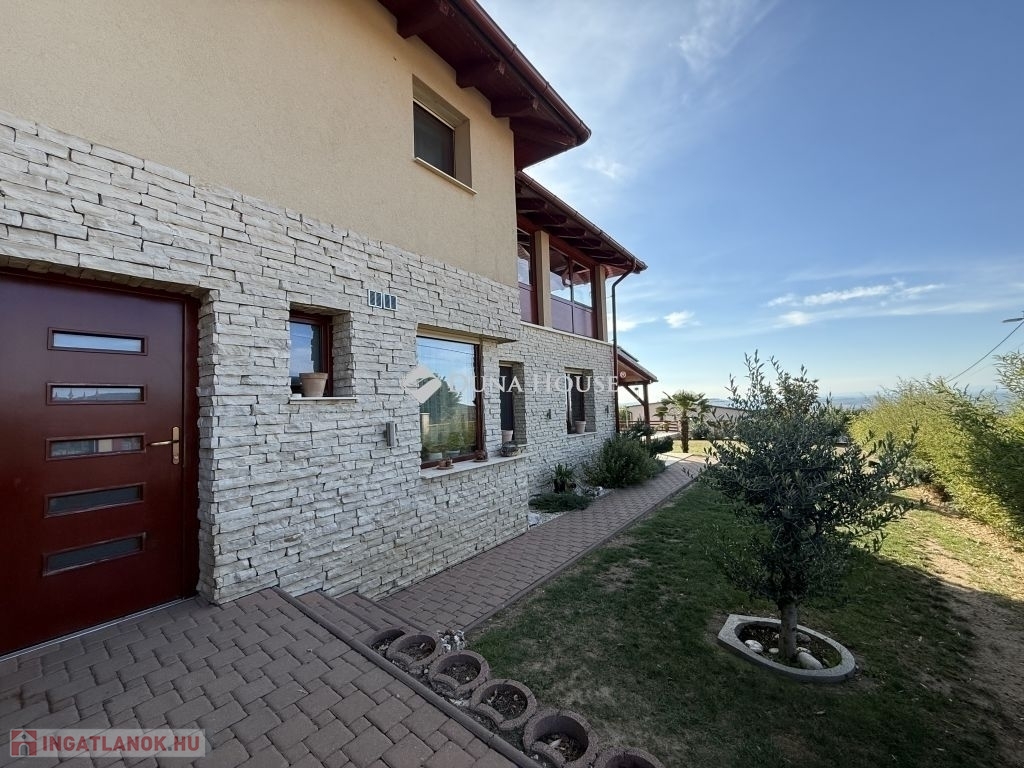 Mecsekoldali panorámás, mediterrán stílusú Prémium családi ház!Eladásra kínálunk egy 2014-ben épült, prémium kategóriás mediterrán családi házat a Mecsekoldal egyik legszebb panorámájú részén. Az ingatlan háromszintes, összesen 275 m² -es, és minden részletében a minőséget és igényességet képviseli.A tágas, napfényes terekkel rendelkező otthon tökéletes választás azoknak, akik a modern technológia, a természet és a kifinomult esztétika harmóniáját keresik. A ház örökpanorámás kilátást kínál a városra és a Mecsek zöldjeire, miközben a környék nyugalma igazi otthoni hangulatot teremt.A belső terek átgondolt elrendezésűek: tágas nappali, kényelmes étkező, vadonatúj, modern konyha, két gyermekszoba, egy hálószoba, két gardrób, két fürdőszoba és két különálló mosdó biztosítja a család kényelmét. A házhoz két nagyméretű terasz, egy óriási pince, valamint gondozott, mediterrán hangulatú kert tartozik automata öntözőrendszerrel és játszótérrel.A kert központi eleme a feszített víztükrű, fűthető-hűthető 4x8 méteres medence, amely masszázs funkcióval és fejzuhannyal is felszerelt, így egész évben a pihenés és feltöltődés helyszíne lehet. A fedett terasz kézzel faragott, rétegragasztott fa szerkezettel, toló-nyitható ablakrendszerrel készült, így a külső és belső terek harmonikusan összekapcsolódnak.Műszaki jellemzőkGlück Kft. által kézzel készített, hossztoldásmentes, rétegragasztott Borovi fenyő nyílászárók, háromrétegű üvegezésselRehau fűtésrendszer: kizárólag padló- és falfűtés, radiátorok nélkülFűtés: gáz, áram, valamint vízteres kandalló44 cm vastag Porotherm tégla + 12 cm grafit hőszigetelés megfelel passzívház követelményeknek10 kW-os szaldós napelemes rendszer, rendkívül alacsony rezsiköltséggel (csak víz és alapdíjak)Acélszerkezetű, hőszigetelt tető Bramac Római Protector cserépfedésselWifis, távirányítható, hőszigetelt alumínium redőnyök szúnyoghálóvalT-Home optikai internet akár 2 Gb/s sebességgelEz a panorámás, energiatakarékos, exkluzív Mecsekoldali villa ritka lehetőség azok számára, akik kompromisszumok nélkül keresnek egy modern, elegáns és egyben otthonos életteret Pécs egyik legnívósabb környékén.Bővebb információért, megtekintésért várom hívását!