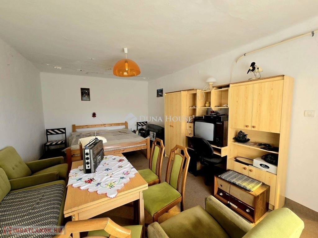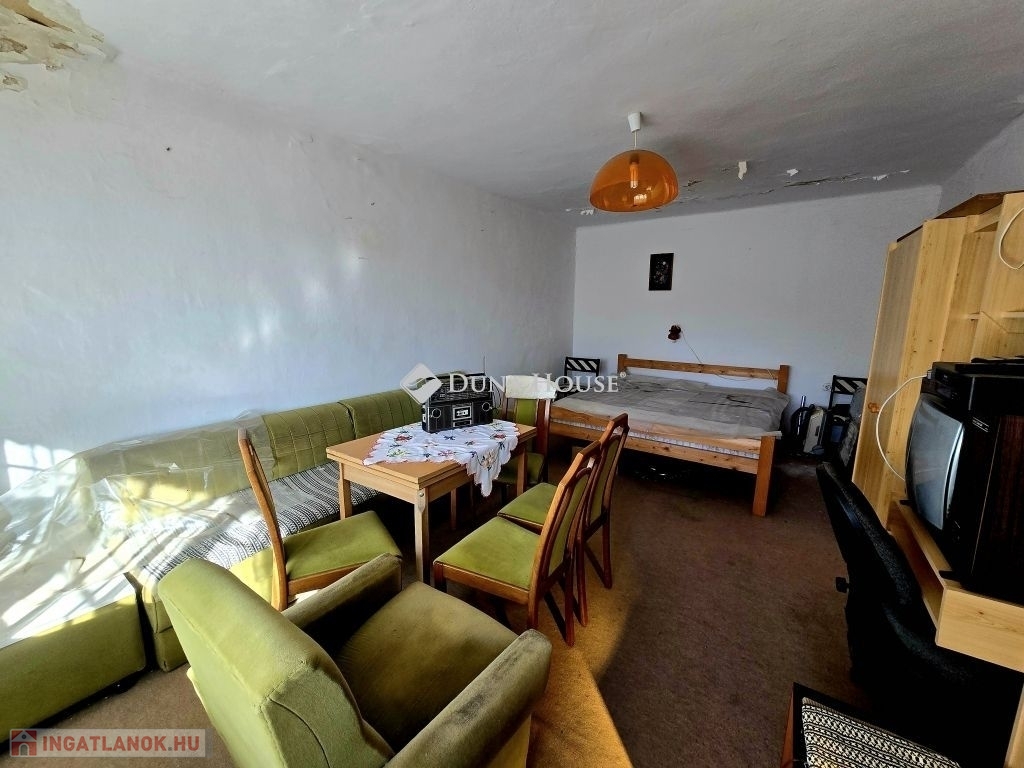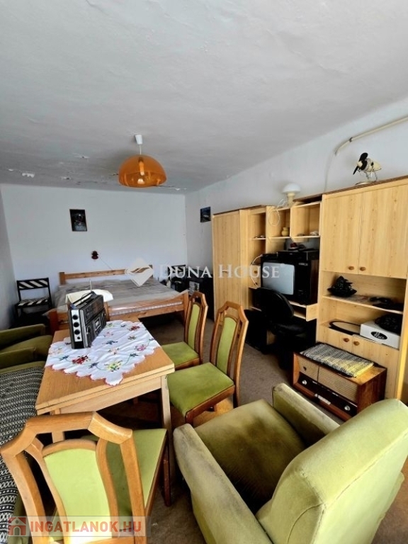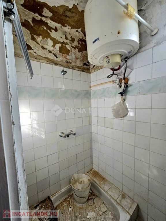 Pécsbánya kellemes fekvésű utcájában eladó egy picike, egy szoba, konyha, fürdőszobás házikó, mely jelenleg felújításra szorul, de annak elkészülte után egy kis ékszerdoboz lesz...Az ingatlan tégla szerkezetű, 1985-ben épült.Lapostetős kialakítású, mely korábban beázott.A hiba javítása új tetővel lett korrigálva, de a belső javítási és felújítási munkálatok az új tulajdonosra várnak.Az ingatlan osztatlan közös tulajdon a telken lévő másik/nagyobb/ házzal. Ez jelenleg nem probléma, hisz egy tulajdonos birtokolja mindkettőt.Az épület fűtését gázkonvektorral oldották meg, a melegvíz ellátást villany boiler biztosítja.Alapterülete cca. 40 nm, az ingatlan minden közművel rendelkezik.További kérdések esetén kérem hívjon!