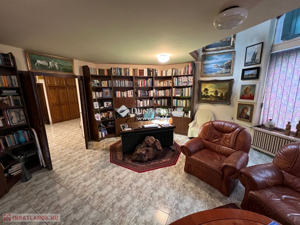 Pécs egyik legkedveltebb villanegyedében található a Mecsek lábánál, festői környezetben, csendes zsákutcában levő, Bachmann Zoltán Ybl -díjas építész által tervezett 3 szintes örök panorámás telken elterülő családi villa eladó. A villában található: 3 hálószoba (2 hálógaléria), 2 nappali, 2 fürdőszoba, +1 mellékhelyiség, konyha, étkező, garázs, pince, alkotóműhely, ahol ezidáig is remek alkotások születtek. A pihenéshez elengedhetetlen a nagy terasz, amelyből itt 2 is rendelkezésre áll. Az udvarban napkollektorral fűtött úszómedence, szaunaház, grillterasz található. A ház klimatizált és padlófűtéssel ellátott, ami későbbiekben alkalmas akár hőszivattyús fűtés használatához is.
