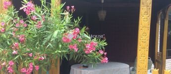 A telek 1464 nm, mely arborétum szerűen betelepített növényzettel díszített. A ház kellemes klímáját az évtizedes fák, és a kert növényei biztosítják. Az ingatlanhoz 1 különálló és egy házban található garázs tartozik, ill. fedett gépkocsi beálló is használható, így összesen 4 autó számára van parkolási lehetőség.