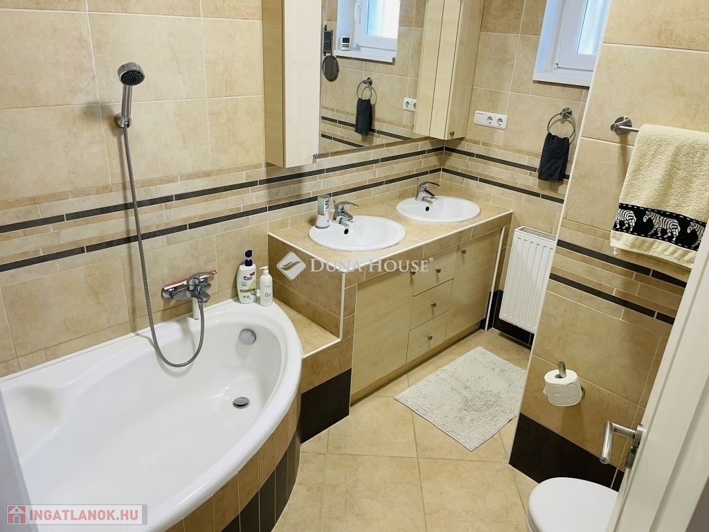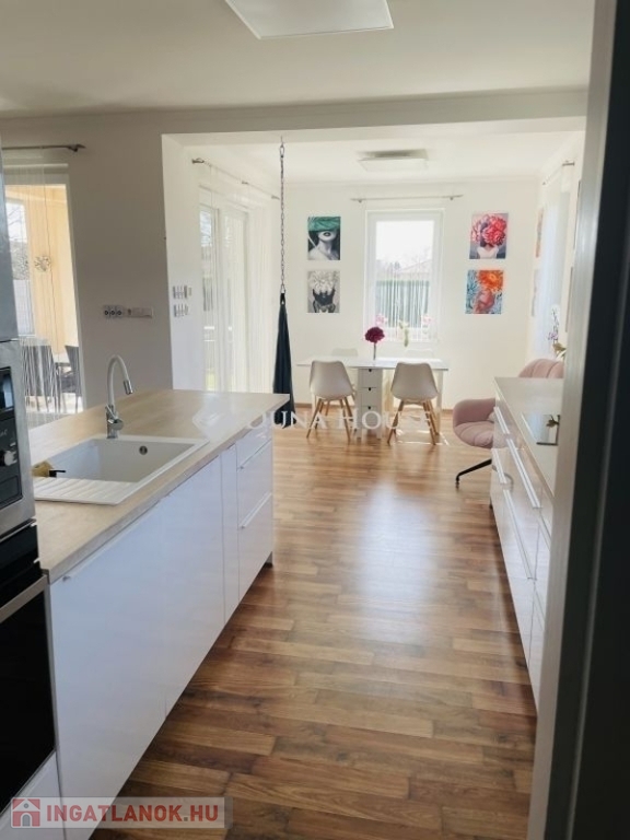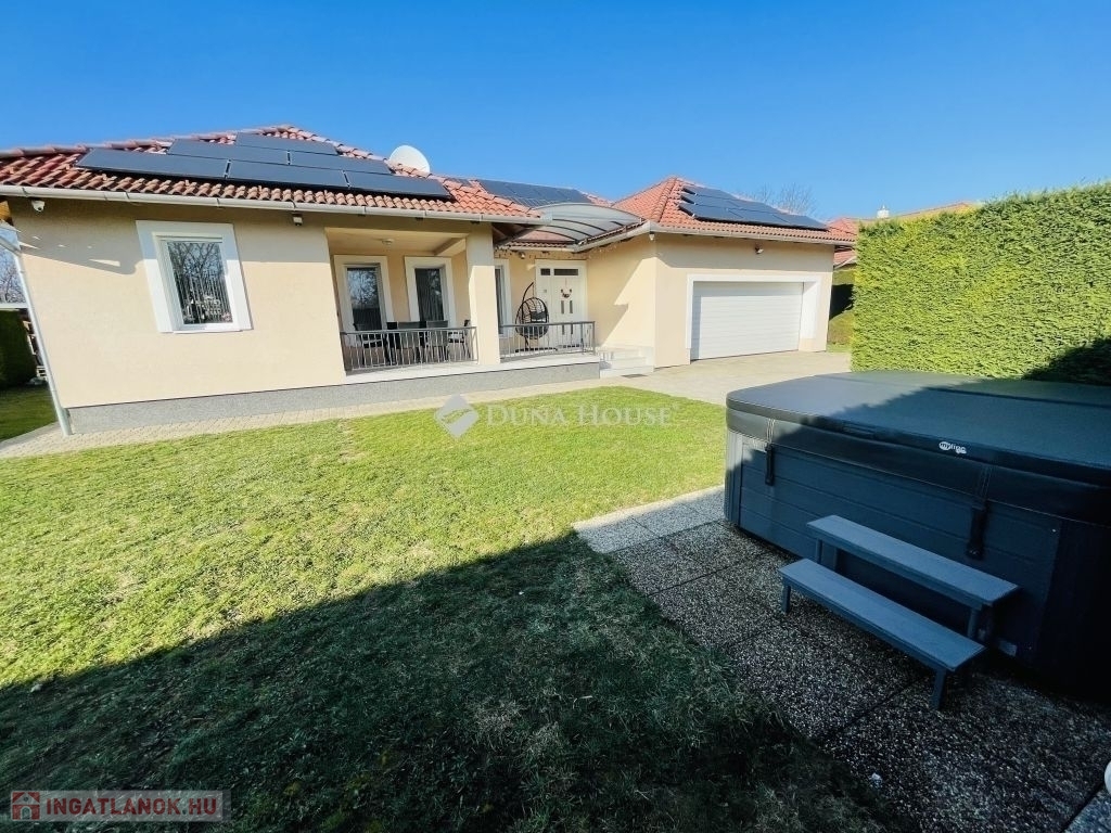 Modern családi ház Pécs-Újhegyen napelemmel és dupla garázzsal.Pécs Újhegy csendes részén, a Barázda utcában eladó egy 2010-ben épült, egyszintes családi ház, amely ideális választás lehet családok számára.164 m² összterület 132 m² lakótér 32 m² kétállásos garázs. Helyiségek: amerikai konyhás nappali étkezővel 3 hálószoba gardróbszoba 2 fürdőszoba + vendég WC kamra és háztartási helyiség 20 m² fedett teraszFőbb műszaki jellemzők:Viessmann gázkazánpadlófűtés és radiátorvízteres kandallóHoneywell helyiségenként szabályozható fűtés5,2 kW klíma3x25 Amper 7 kW napelem rendszer szaldó elszámolással 2030.12.31-igExtrák: elektromos alumínium redőnyök elektromos garázskapu és kertkapu riasztórendszer és kamerarendszer vízlágyítóUdvar: * telepített robotfűnyíró* privát kert Leylandi sövénnyel* privát játszótér* kerti sütő / grill rész* 10 m² faház* fatároló* finn szauna és jakuzzi* 10m3-es ciszterna gépesítve öntözésre* gyümölcsfákNyugodt, családi házas környezet, tágas és világos terekkel.Minden adott, hogy ez legyen az új, komfortos otthona.Érdeklődés esetén keressen bizalommal. Tekintsük meg együtt, hogy személyesen is meggyőződhessen, ez amit eddig keresett!
