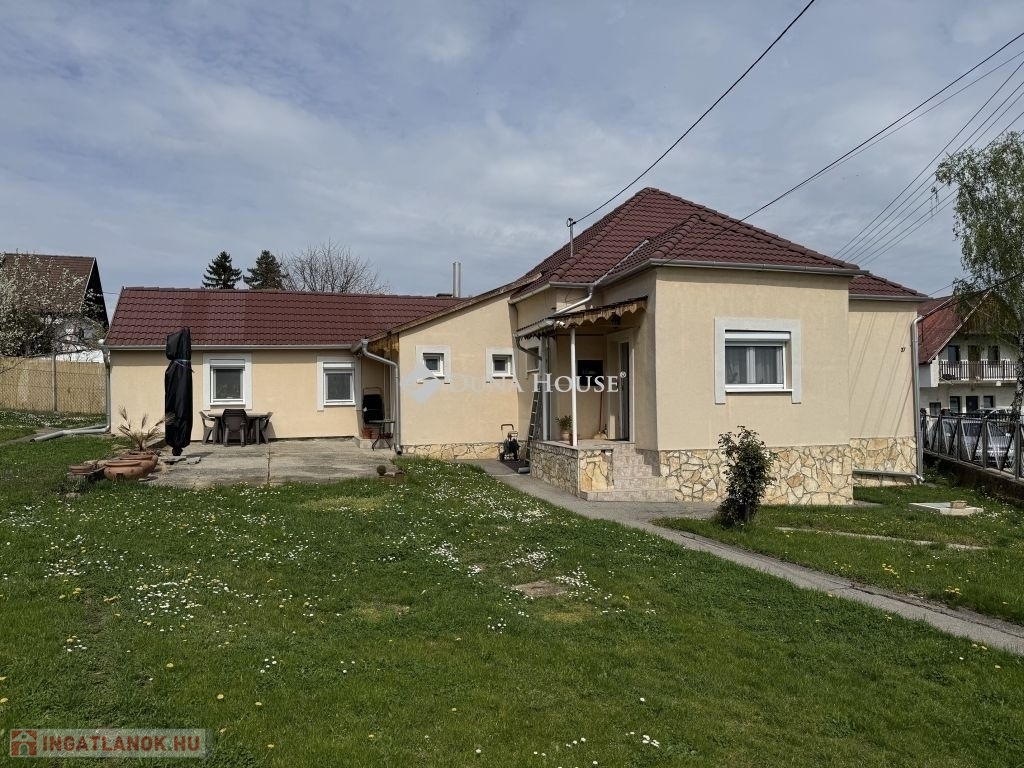 Eladó Pécsett családi házas övezetében, a Szabó István utcában egy 112 m2 alapterületű, nappali +2 szobás, 2 fürdőszobás, 1 448 m2-es telken fekvő családi ház!A telken egy 20 m²-es garázs, valamint egy 10 m²-es melléképület is helyet kapott.A ház az 1960-as években épült. Az ingatlan az elmúlt években jelentős felújításokon esett át: 2017-ben megújultak a vizesblokkok, a villanyhálózat, a burkolatok, míg 2024/25-ben a teljes nyílászáró csere megtörtént, korszerű, hőszigetelt műanyag ablakokkal, redőnnyel és szúnyoghálóval. A fűtést gázkazán biztosítja, a nappaliban egy még garanciális Fisher inverteres klíma található.Az ingatlan ideális választás lehet családok számára a tágas élettér és a nagy telek miatt.További információért vagy megtekíntésért hívjon!
