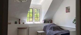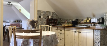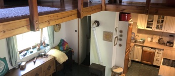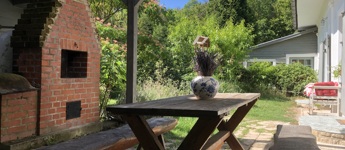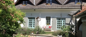 A ház a Balaton-felvidék egyik legbájosabb településén, Pécselyen a hegyoldalban fekszik, csupán 20 percre a Balatonparttól, mégis teljes nyugalomban, a csend és a zöld dombok ölelésében. Itt a patak csobogása és a madarak éneke az állandó háttérzene, a levegő pedig kristálytiszta
