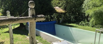 Kültéri medencéje (8 x 4,5 méteres) tökéletes felfrissülést kínál a nyári napokon, míg az árnyas fák alatt piknikezve valóban úgy érezhetjük, mintha egy mesébe csöppentünk volna. A fúrt kút és a közmű ellátottság (víz, villany) biztosítják a zavartalan hétköznapokat.