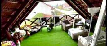 A ház mellett került megépítésre egy külső lépcső, mely felvezet minket az emeletre. Itt is található egy az udvarra néző 20nm tetőtéri terasz. A bejárati ajtaja és ablakai az emeleti lakásnak szintén műanyagok már. Belépve az ajtón egy tágas, napfényes amerikai konyhás nappalis kialakítás kapott arcot 2024-ben. A nappaliból nyílik egy hálószoba és egy zuhanyzós fürdőszoba. A nappali nagyságából adódóan szükség szerint még egy kis szoba kialakítható akár. Emeleti belmagasság 2,36m.