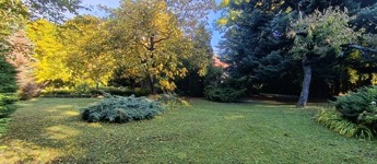 A kert 1667 nm nagyságú, gondozott, számtalan dísznövény, és fenyő található rajta. A telek arányos téglalap alakú, az épület a telek középső részén helyezkedik el.
