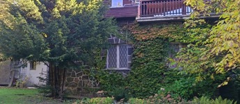 Dobogókő csendes kis mellékutcájában, az Arany János utcában, árnyas fák között húzódik a kétszintes, kívülről terméskő burkolattal védett családi ház, a tulajdoni lapon „hétvégi ház” megjelöléssel.