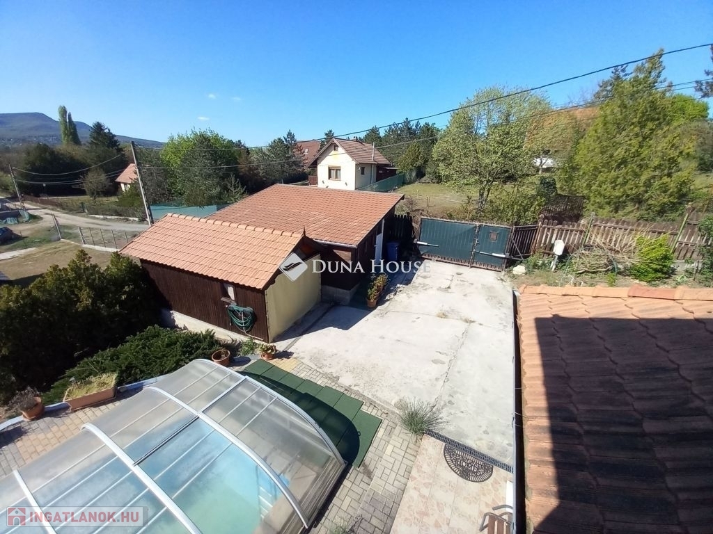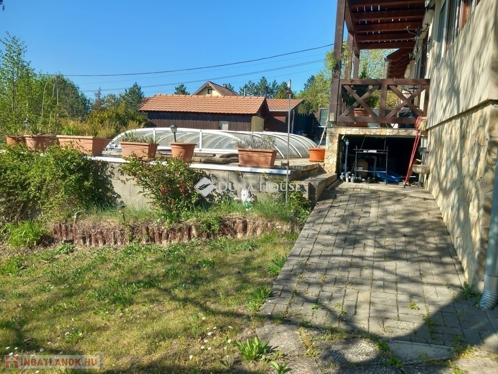 PÓCSMEGYER napsütötte DNY-i domboldalán eladó egy PANORÁMÁS önálló CSALÁDIHÁZ kültéri MEDENCÉVEL, 2 állásos GARÁZZSAL, MŰHELLYEL.