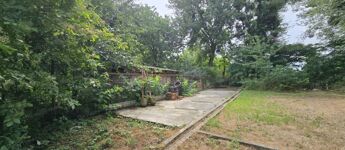 A telek végén öntött beton alap (korábban kutyakennelként funkcionált)