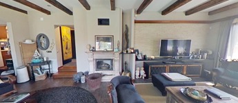 A ház főbejárata egy nagy 30 nm-es teraszról nyílik, melyen akár rossz időben is használható. A medence mellett még egy nagy, 30 nm-es terasz van, melyben egy működő kandalló is helyet kapott. A medencéhez sportoláshoz alkalmas áramoltató is jár.
