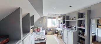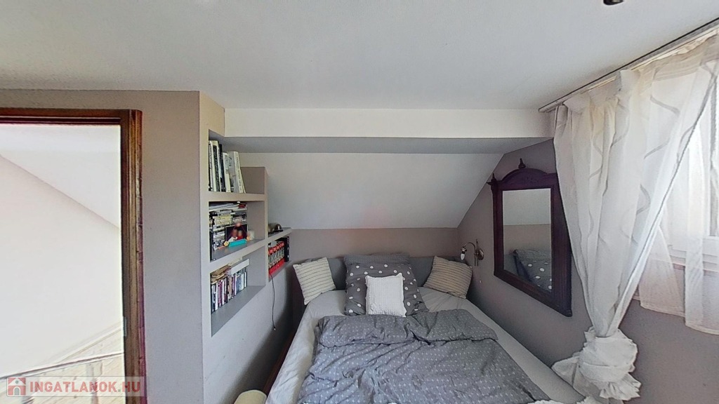 Az emeleten további 2 teljes értékű és egy fél hálószoba, fürdőszoba/wc, valamint egy gardrób szoba került kialakításra, picit több, mint 40 hasznos négyzetméteren.