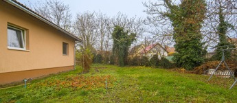 Az ingatlan a 22 m²-es garázson keresztül kapcsolódik a szomszédos épülethez. A nagyméretű teraszra a nappaliból lehet kilépni, és a telek elrendezésének köszönhetően az ingatlan szinte teljesen körbejárható.