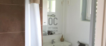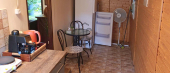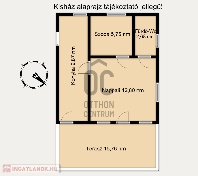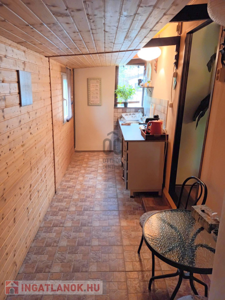 A kisházban 1 különnyíló szoba, nappali, fürdőszoba-Wc, konyha-étekező helyiségek vannak, illetve itt is találunk egy 15,76 négyzetméteres teraszt. A szoba és a nappali laminált burkolatot kapott, a többi helyiségben járólap van.