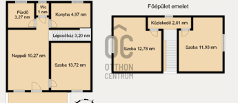 A főépületben a földszinten 1 különnyíló szoba, nappali, fürdőszoba, külön Wc, konyha-étkező helyiségek találhatóak, a tetőtérben 2 különnyíló szoba - kialakított mosdórésszel, illetve közlekedő. A ház szépen felújított, minőségi burkolatokkal van ellátva. Fűtése gázcirkó, radiátoros hőleadással, de található benne egy hangulatos cserépkályha is. Minden helyiségben laminált padlóburkolat van.