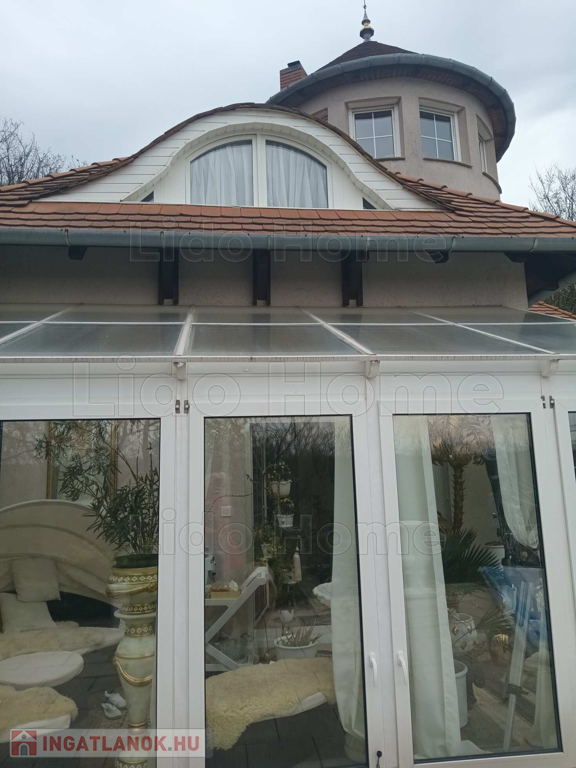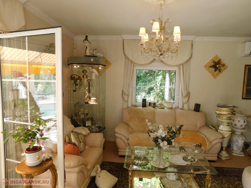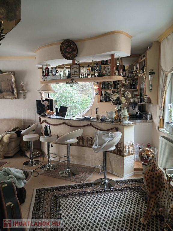 - földszint: előszoba, közlekedő, konyha+étkező, kamra, nappali, téli kert, kávézó bárpulttal, WC kézmosóval, panorámás grillező és napozó terasz medencével, amely: 5*8 m, 1,5 m mély