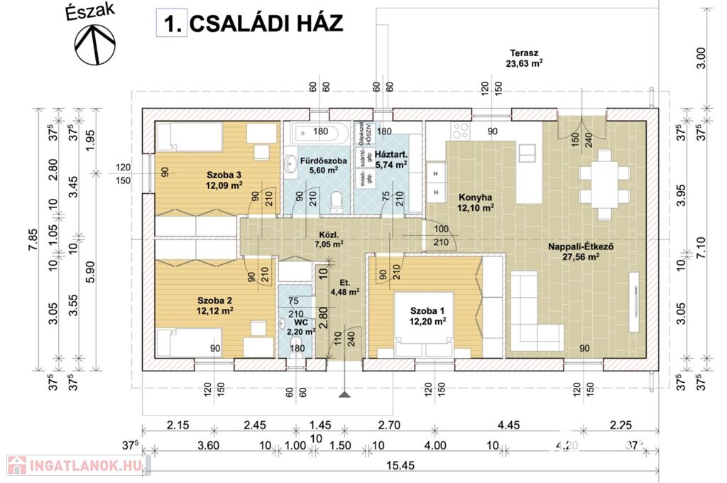 A ház 1 db nappalival, 3-4 db hálószobával, 1 db fürdőszobával, konyha étkezővel közlekedővel, terasszal rendelkezik. Az ingatlan elhelyezkedésre, kialakítása miatt, maximálisan kiemeli ezt az ingatlant az átlagos lakások sorából és egyedülálló választássá teszi azt. További előny. hogy ház hőszivattyús padló fűtéssel, klímás hűtéssel lesz felszerelve.