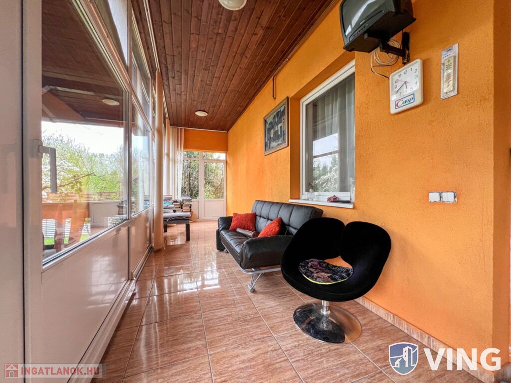 Az ingatlanhoz tartozó telek cca. 300 nm nagyságú, körbekerített, udvari gépkocsi beálló, nyitott terasz, kerti tároló, kemence, fúrt kút, tuják, gyümölcsfák találhatók.