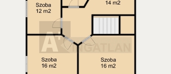 Tetőtér: 3 szoba, fürdőszoba tuskabinnal és wc-vel, galéria