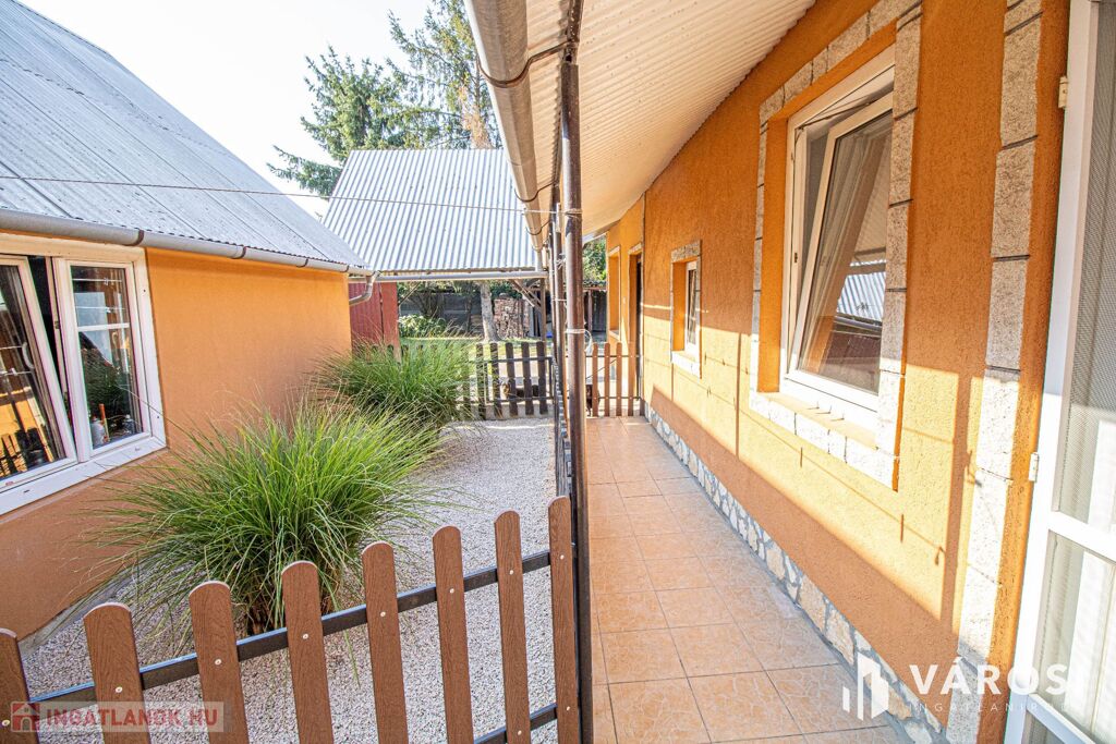 A telek közel 600 m², amelyen a házon kívül található egy 28 m²-es, könnyűszerkezetes, fűthető garázs, továbbá fedett tárolók és egy ásott kút.