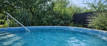 A hangulatos udvar valódi élménytér: hőszivattyús fűtésű medence keringetőrendszerrel, sütögetőhely, két pagoda, valamint bőséges tér a családi és baráti összejövetelekhez.