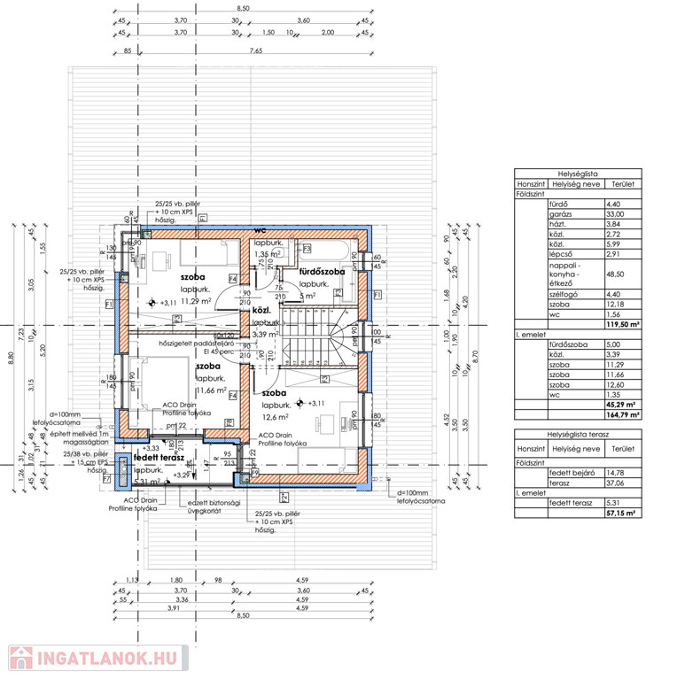 - nettó alapterület: 165 m2 + 20,1 m2 fedett bejáró és erkély + 37 m2 terasz