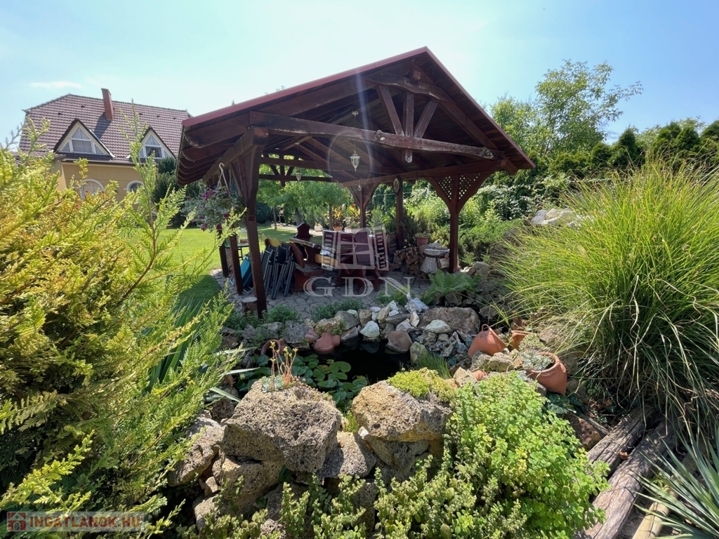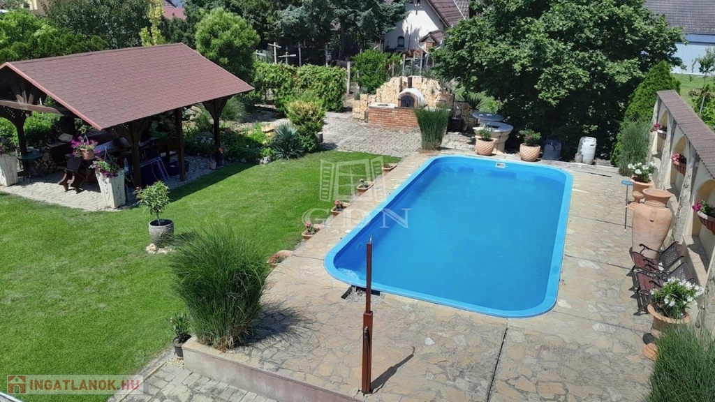 Szépen parkosított kertben, kiépített úszómedence található tisztító, vízforgató rendszerrel ellátva. Továbbá kis hangulatos halastó, pavilon, grillező, kemence helyezkedik el.