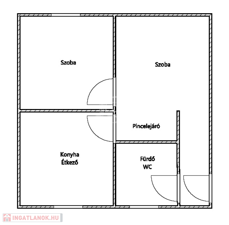- 2 szoba+konyha étkezővel