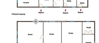Felső szint: 4 szoba, konyha, fürdő, kamra, étkező, közlekedő