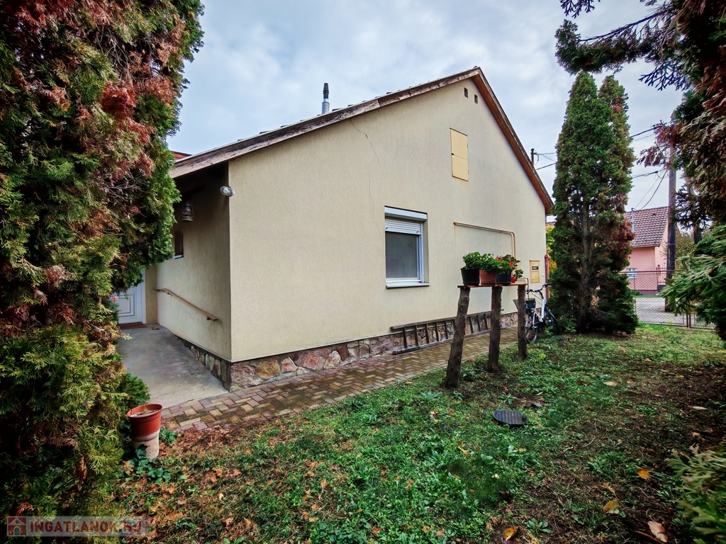 Szeged-Kecskés István telep elején, az egyik csendes utcában, 1960-as években épült, vegyes falazatú, földszintes, 68 nm-es, 2 szobás, étkező konyhás nagy spájzzal, egyedi korszerű gáz cirkó fűtéssel rendelkező (2 éves) ikerház 566 nm-es gondozott telken, fedett terasszal, tárolókkal, pincével tehermentesen eladó. A teljes tetőszerkezetet 10 éve újították fel és szigetelték, a villanyhálózatot pedig néhány éve. Új ablakok redőnnyel, szúnyoghálóval.