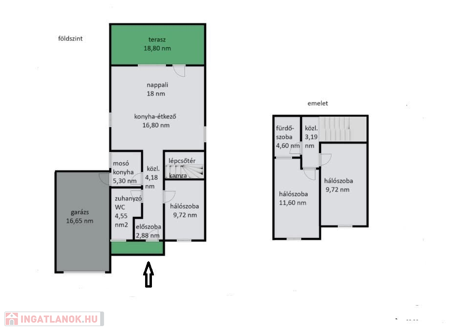 Sényő egyik csendes, aszfaltozott utcájában eladásra kínálok egy építés alatt lévő, jó minőségű alapanyagokból épülő, 111 nm-es, szintes családi házat. Az ingatlan 294 nm-es telken fekszik, lakótere 95 nm + 16,65 nm garázs. A garázs Hörmann szekcionált, motoros garázskapuval és padlófűtéssel lesz kialakítva és a szomszédos házzal itt lesz összeépítve dupla falazattal. Az építés várható befejezése 2026 január-február.Az ingatlan jellemzői:- Porotherm Xtherm tégla építés- 15 cm homlokzati szigetelés- 12 cm padlószigetelés- 30 cm kőzetgyapot szigetelés- Bramac antracit cseréptető- Fűtése: hőszivattyús padlófűtés és 2 db hűtő-fűtő klíma- 18,80 nm nyitott terasz- 3 rétegű műanyag nyílászárók (szín még választható)- Választható burkolatokElosztása:- Földszint: előszoba, szoba, nappali, mosókonyha, kamra, fürdő-WC, terasz- Emelet: 2 szoba, fürdő-WCNyíregyháza mindössze 15 perces autóútra található a településtől, így aki egy csendes, nyugodt környezetben szeretne élni, de mégis elérhető távolságban a nyüzsgő városi élettől, annak ez a ház tökéletes választás lehet. Jöjjön el és nézze meg!Amennyiben további információra lenne szüksége várom hívását!Az ingatlan azonosítója: 67737Érdeklődni: 06302669818 Az ingatlan azonosítója: 67737 Érdeklődni: 06302669818
