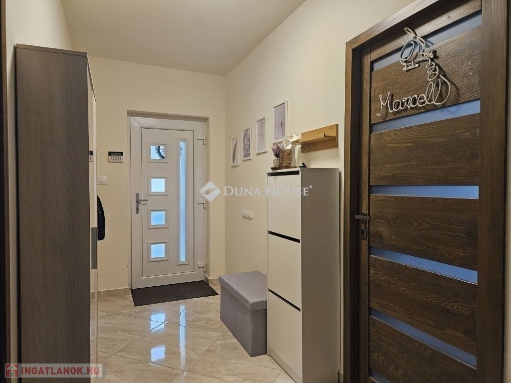 Eladó Máriagyűd egyik kedvelt, rendezett utcájában ez a gondosan karbantartott, 1996-ban épült családi ház, amelynek jelenlegi tulajdonosai az építéstől kezdve ugyanazok, így az ingatlan teljes előélete ismert. A ház Porotherm 38-as téglából épült, teljes körű homlokzati, lábazati és födémszigeteléssel rendelkezik. A beton födém lehetőséget biztosít a tetőtér beépítésére, így igény esetén a lakótér tovább bővíthető. Az ingatlan energiatakarékos megoldásokkal felszerelt: egy 5 kW-os napelemes rendszer működik rajta, amely még 8 évig szaldó elszámolásban marad, és akár 7,5 kW-ig bővíthető. A rendszer jelenleg fedezi a teljes villamosenergia-felhasználást. A fűtésről gázkazán és vegyes tüzelésű kazán gondoskodik, padlófűtéssel kiegészítve. A kellemes hőmérsékletet egész évben két inverteres klíma és egy hűtő-fűtő klíma biztosítja. A fűtési rendszer igény szerint hőszivattyúval is tovább fejleszthető. A 33 m²-es melléképületben egy 23 m²-es, szerelőaknás garázs, valamint egy 10 m²-es tároló és kazánház kapott helyet. A melléképület mögött betonozott udvarrész található, amely alkalmas medence kialakítására is. Az ingatlan korszerű, távfelügyeletes riasztórendszerrel felszerelt, amely a nyílászárókra és a garázsra is kiterjed, így a biztonság is megoldott. A ház ideális választás mindazok számára, akik egy jól karbantartott, energiatakarékos, bővíthető otthont keresnek nyugodt környezetben. Megtekintés és további információ miatt várom hívását.