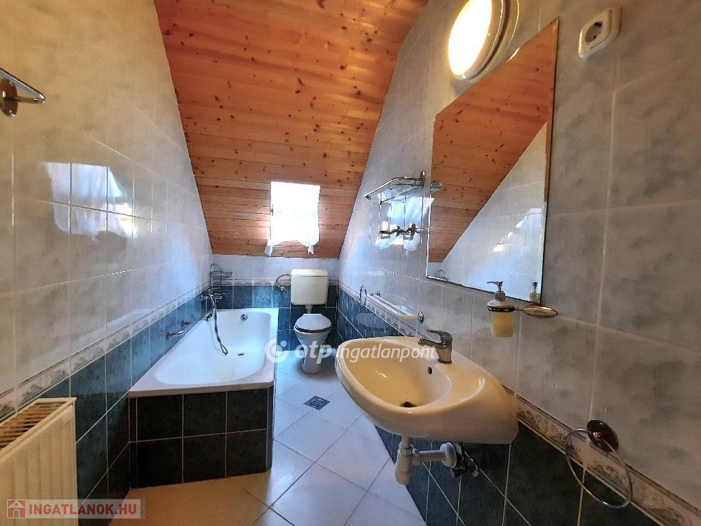 A lakóház összközműves, a fűtést kombi gázkazán biztosítja radiátoros hőleadókkal.