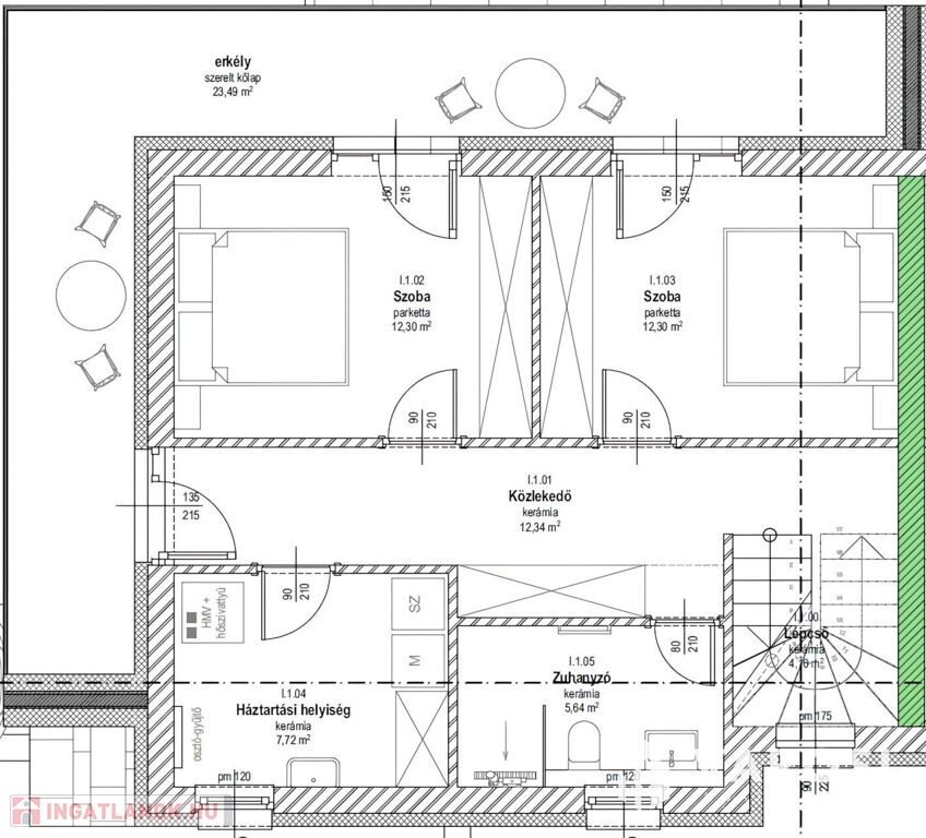 - Energiahatékony megoldások – 15 cm-es grafitos hőszigetelés, hőszivattyús padlófűtés gondoskodik az otthon melegéről