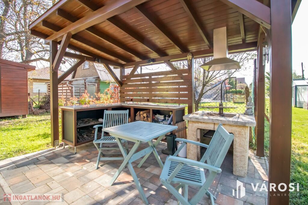 Hangulatos kerti grillező is kialakításra került, de van még hely medencének, játszótérnek stb. Ideális lehet, akár kerti partiknak vagy a család kedvenceinek, akik kedvükre szaladgálhatnak majd rajta. Parkolni az udvaron épített kocsibeálló alatt, előtte vagy az utcán is lehetséges. A kapu távirányítóval vezérelhető, motoros működésű.
