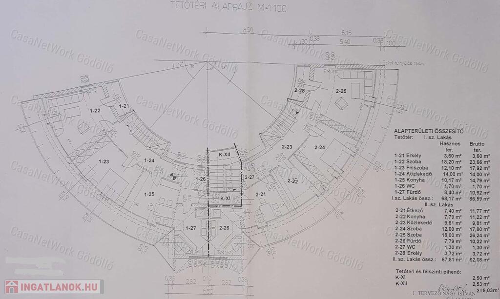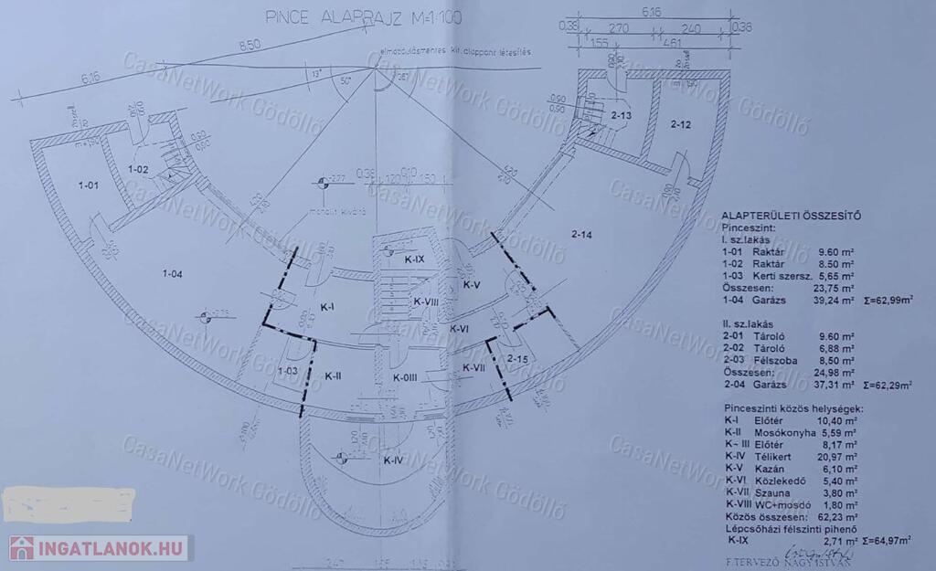 • A megadott 531 négyzetméteren belül 73 négyzetméteren vannak még közös helyiségek, (melyek leválaszthatók igény szerint). Az alsó szinten télikert, két mosókonyha, két kétállásos garázs, 2-2 db. tároló, wc, gépészeti helyiség kapott helyet.