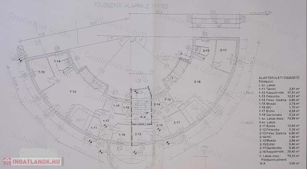 • A földszinten mindkét oldalon nappali-konyha-étkező, 2 félszoba, gardrób, fürdőszoba, wc került kialakításra. Innen a közös belső lépcsőn vagy a saját belső lépcsőn közelíthetjük meg a tetőteret. Ugyaninnen szintén egy belső lépcsőn juthatunk le egy szeparált dolgozószobába.