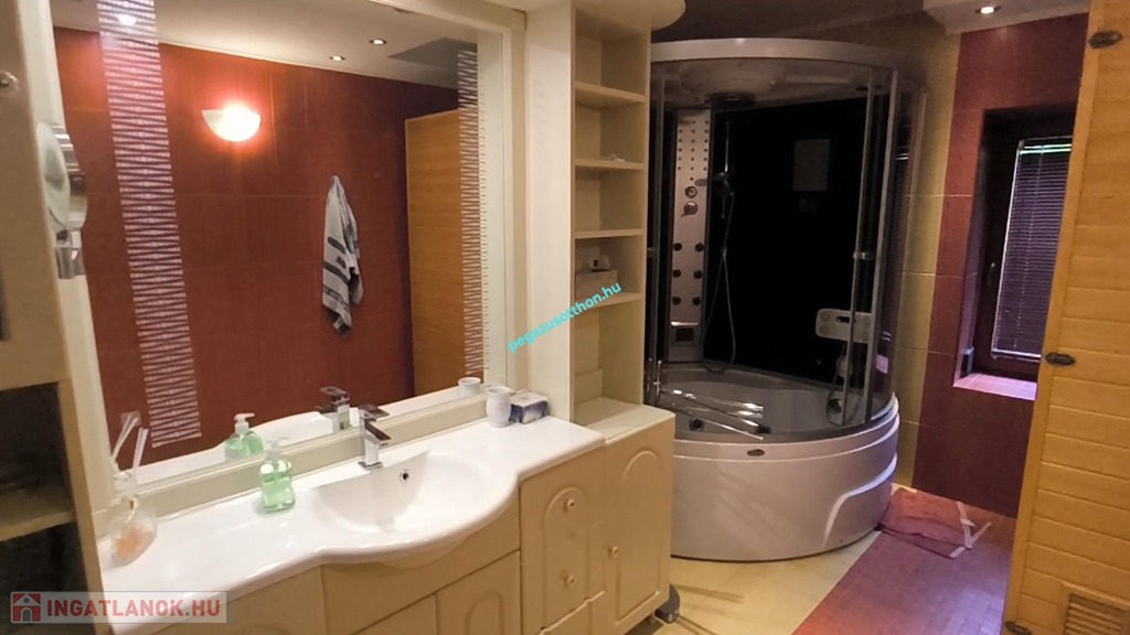 Az ingatlanhoz 12 méteres medence tartozik, ami jelen pillanatban fedve van, de kialakították a gépészethez szükséges teret.