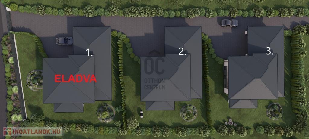 Székesfehérváron, Öreghegy csendes zsákutcájában, 3 családi házas lakóparkban, a 3. belső egység, nettó 145 m2-es lakóterű családi ház, 604m2-es saját telekrésszel, DUPLA GARÁZZSAL, TERASSZAL, KERTKAPCSOLATTAL, kulcsrakész átadással eladó.