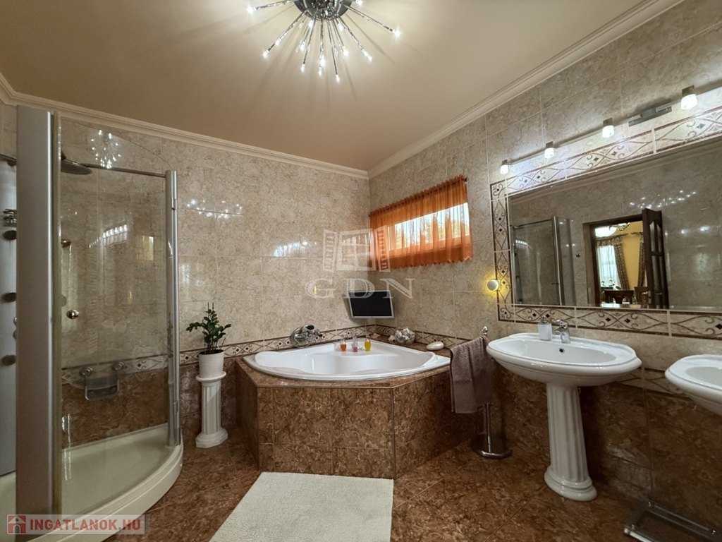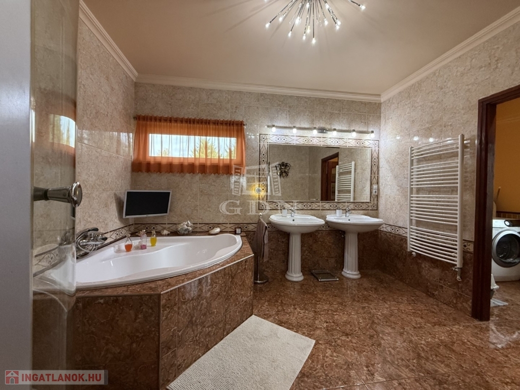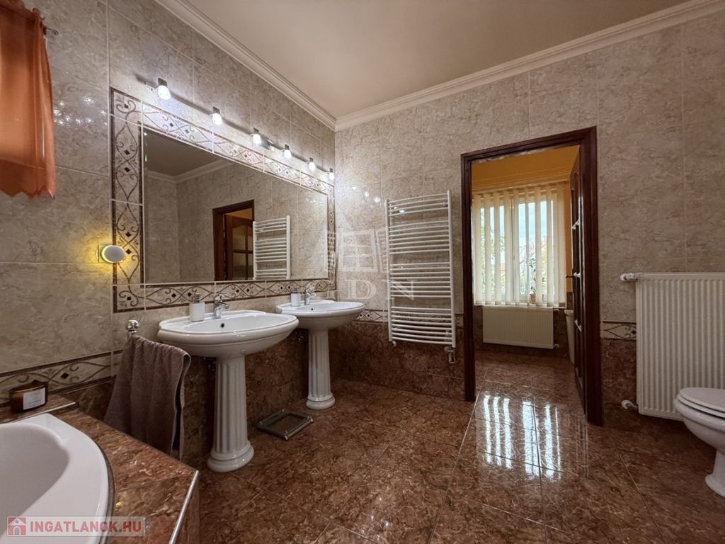 Ugyanitt eladó a földszinti lakás is, szintén saját garázzsal, telekrésszel és külön utcai bejárattal. A ház összesen 338m2 hasznos alapterületű. Az egész ház együttes megvásárlása esetén kedvezmény!