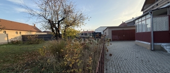 A telek körbe kerített, a bejutás széles kapu keresztültörténik. A ház mellett jó állapotú melléképület/ műhely, és egy 2 állásos garázs található. A kertben pár gyümölcsfa, veteményes lett telepítve..