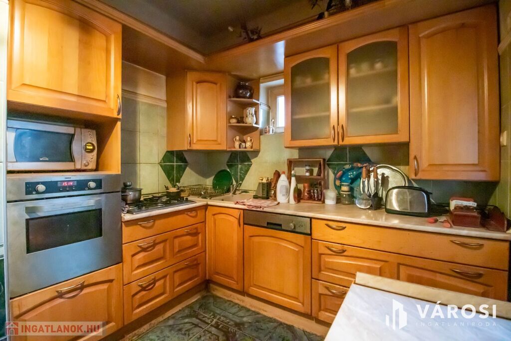 A méretre készült, beépített konyha olyan, mint amit minden háziasszony álmodik magának. Tágas, napfényes és minden korszerű géppel felszerelt. Ezek értelemszerűen maradnak és a következő tulajdonos számára könnyítik meg a házimunkát.